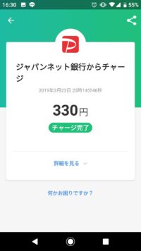 PayPayの残高は銀行からのチャージで簡単に入金できました。